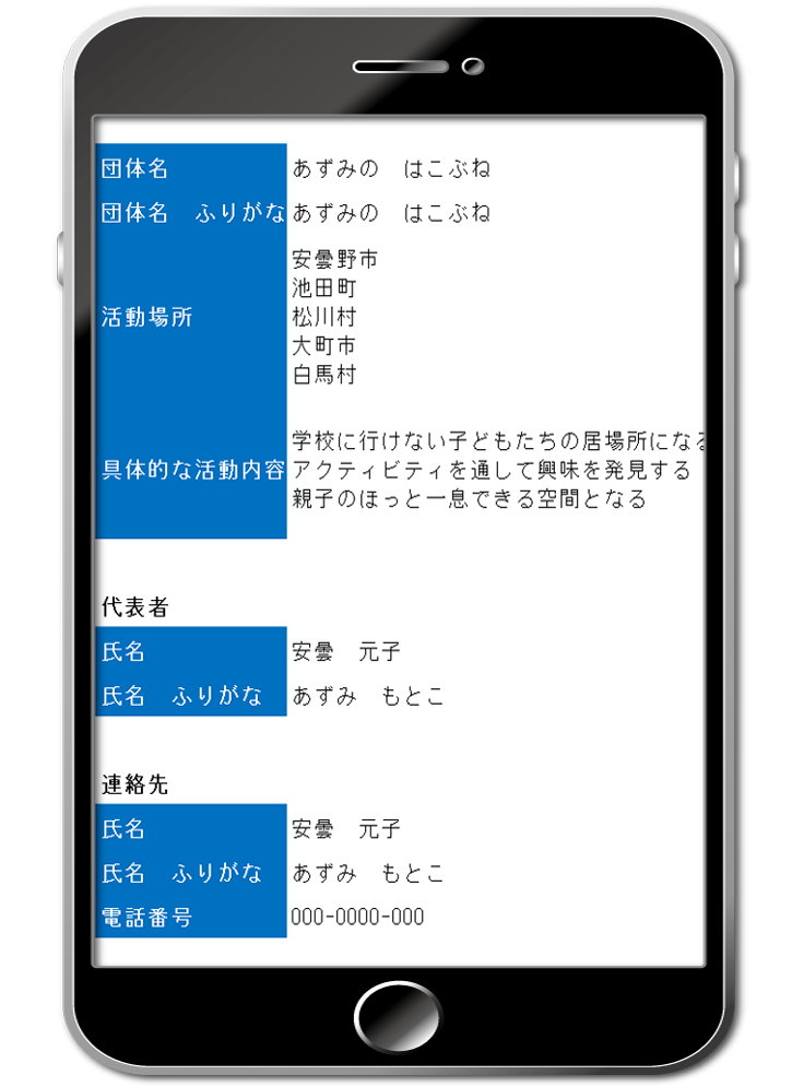 団体の基本情報を掲載できます。ホームページがない団体にとっては「ホームページ代わり」となり、活動内容をインターネットを通じて届けることができます。