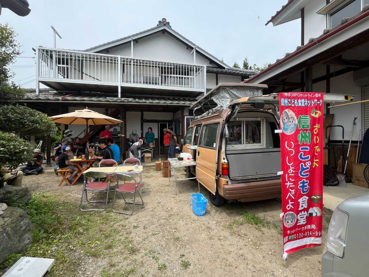 信州への移住を機に、「こども食堂」を運営する「NPOホットライン信州」※と出会い、キッチンカーで困っている人たちへの食材や物資の提供を行ってきました。活動は今も継続しています。